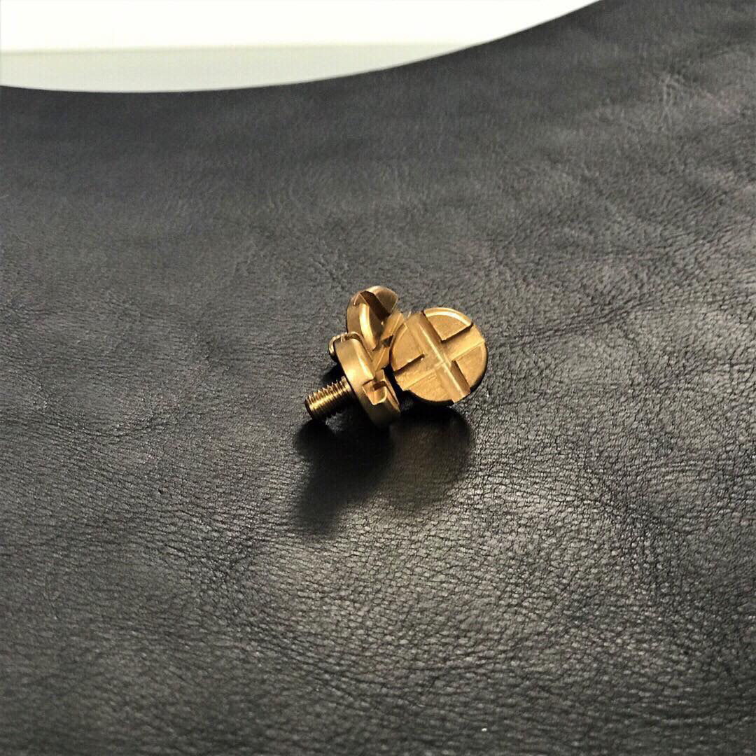 The + icon found in the logo was made into their trademark bolts and screws.